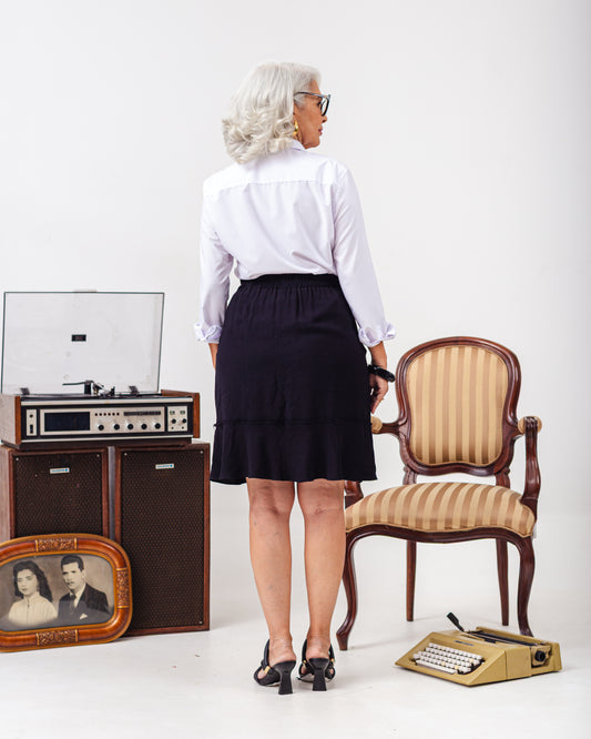 Um respiro nostálgico, esta coleção traz o encanto do que é antigo, raro e eterno. Peças com perfume de outras épocas, mas com alma contemporânea. É o vintage repaginado com olhar sustentável. Tramas, tecidos encorpados, botões garimpados e formas atemporais que contam histórias e cultivam memórias. Cada roupa é como um objeto de afeto: algo que você encontra por acaso e jamais quer deixar ir.