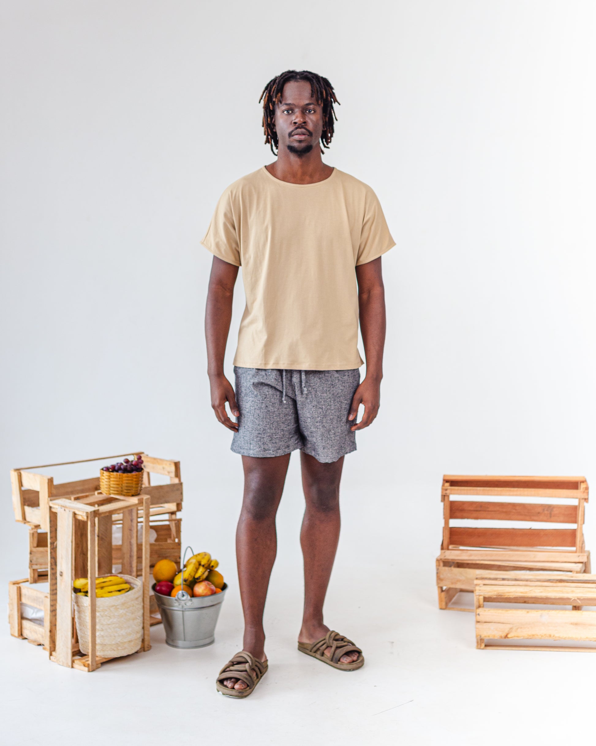 Minimalista e significativa, essa blusa conecta corpo e solo com serenidade e sofisticação. Modelagem solta com mangas chinesas, comprimento levemente cropped. Gola redonda e barra com leve abertura lateral. Tecido fluido e respirável. Composição: 100% algodão orgânico.