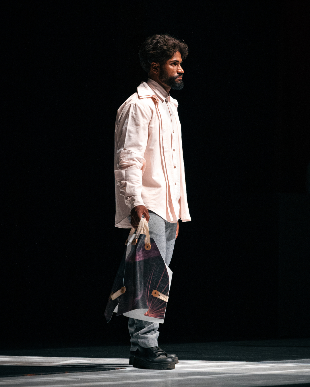 Camisa em sobreposição com modelagem ampla, criada em algodão leve e responsável. O look é acompanhado por uma bolsa única, feita a partir de telas de quadros que seriam descartadas — um exemplo de upcycling que transforma arte em funcionalidade. Cada peça ressignifica o tempo, ganhando novas camadas, novos usos e novos sentidos. Ideal para quem busca moda sustentável, autoral e com identidade artística.