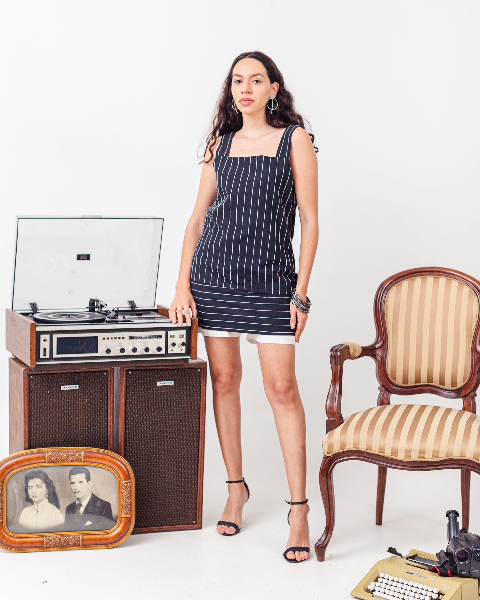 A fusão entre a força do clássico e a ousadia do contemporâneo. Esta regata de alfaiataria risca de giz, em preto e branco, ressignifica a elegância com um corte impecável, caimento fluido e estrutura que veste com personalidade. Feita com matéria-prima sustentável, une tradição e inovação em uma peça atemporal, versátil e sofisticada. Vista-se de confiança, vista-se de atitude.
