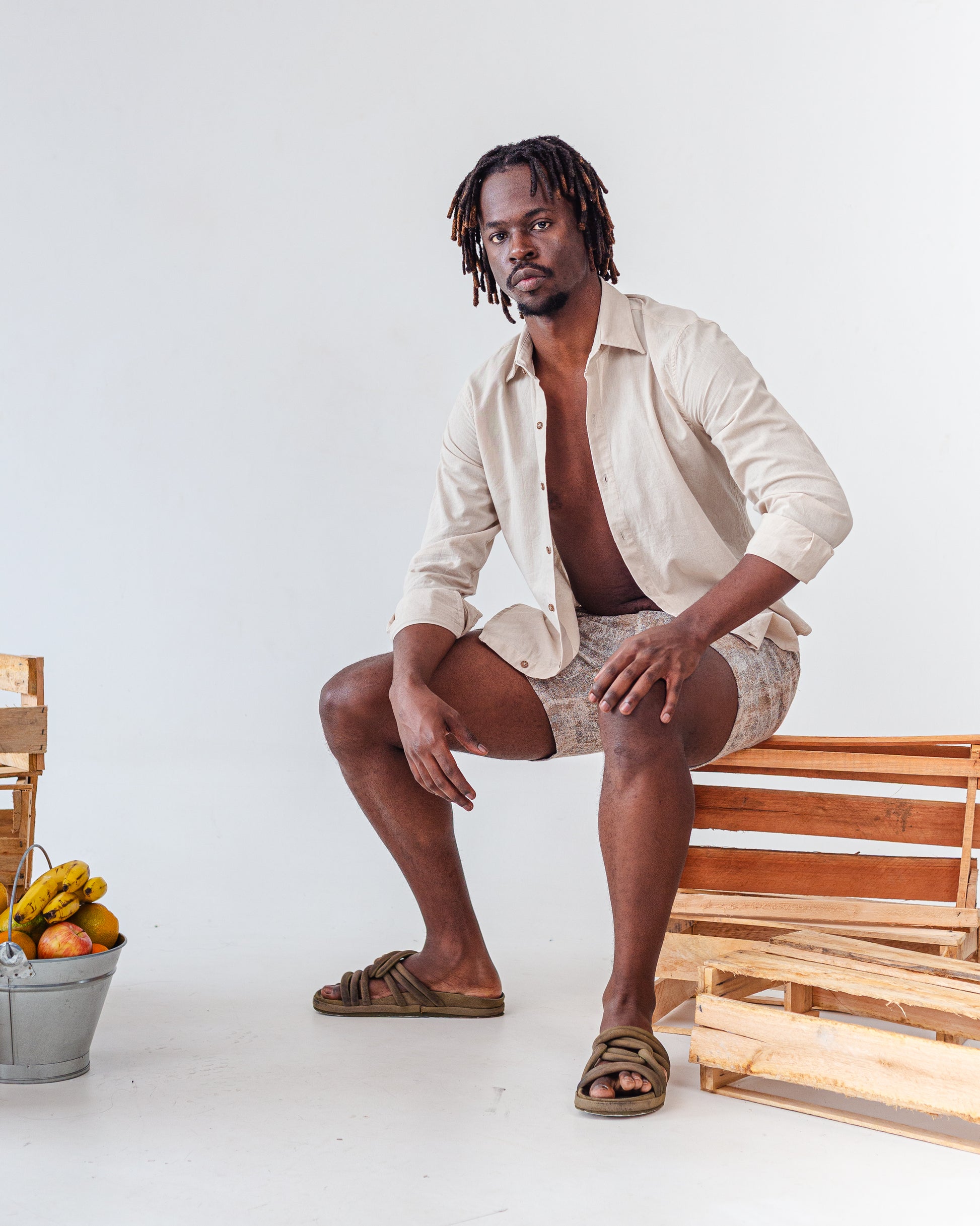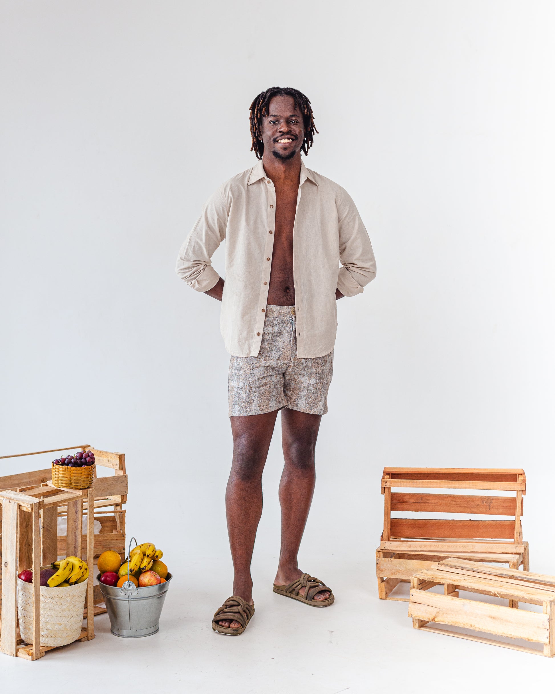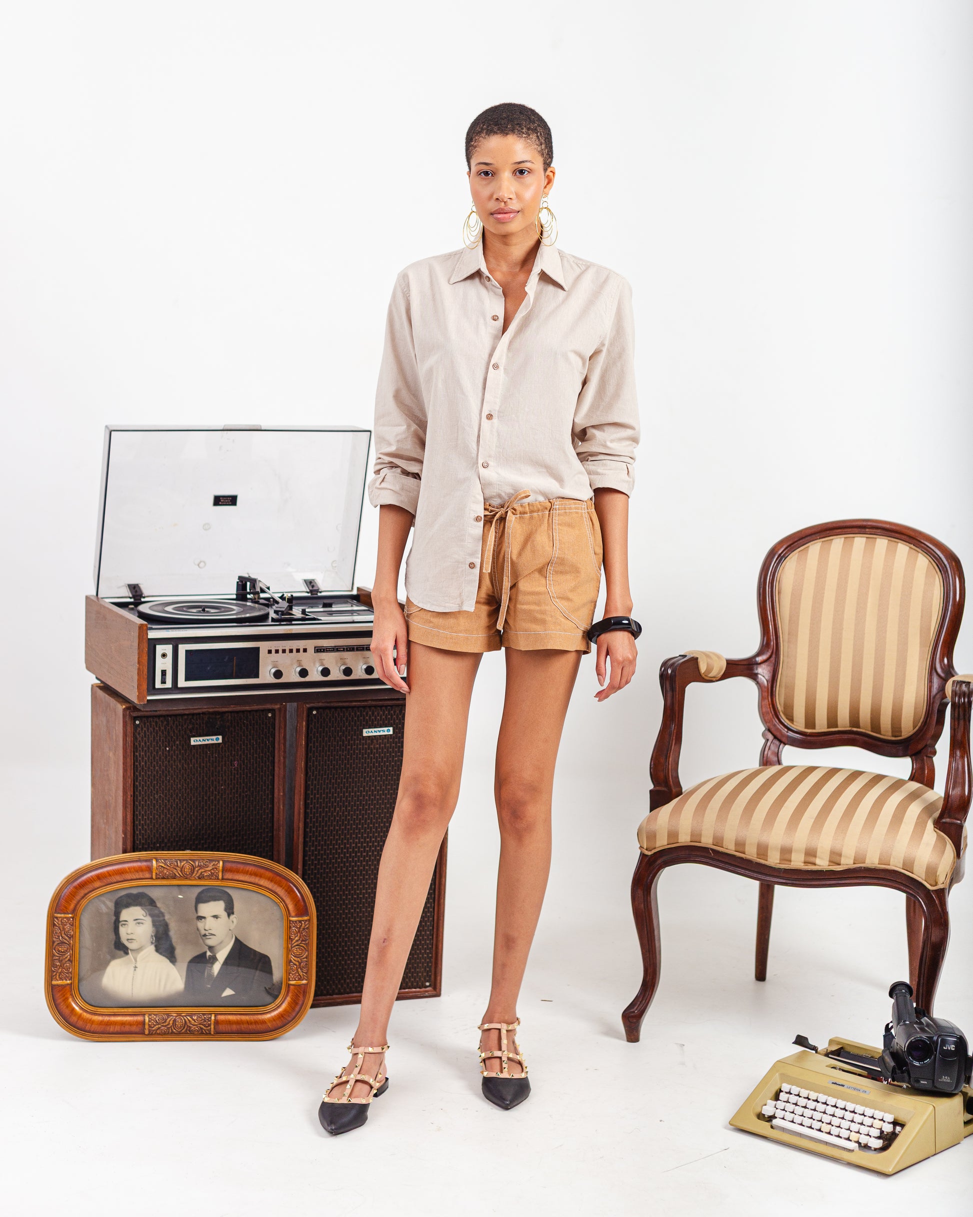 Na cor da terra e do toque, a Camisa Peau representa o lado mais íntimo e sensorial da coleção Je T’aime – GTEM. Seu marrom claro lembra pele aquecida de sol, abraço de fim de tarde, e o gesto de se vestir com intenção.