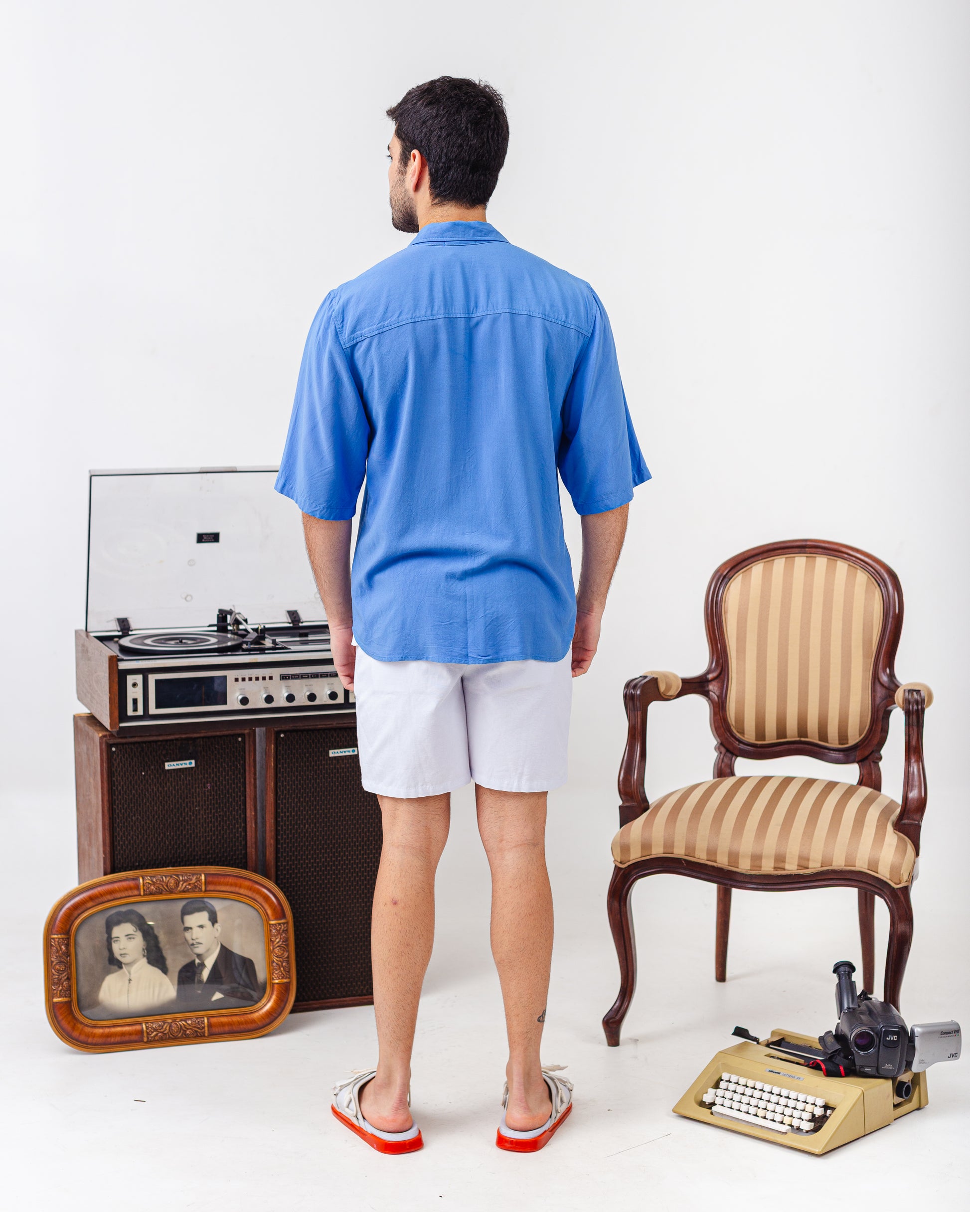 Feito inteiramente com garrafas PET retiradas do meio ambiente, o Short Amassei tem toque surpreendentemente macio e aconchegante. Não precisa ser passado, amassa bonito e volta ao lugar, trazendo praticidade para o dia a dia e leveza para viagens.